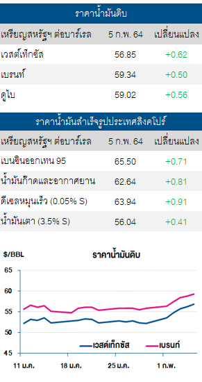 – จำนวนแท่นขุดเจาะน้ำมันดิบและก๊าซธรรมชาติสหรัฐฯ เพิ่มขึ้น 4 แท่นแตะระดับ 299 ณ สัปดาห์สิ้นสุด 5 ก.พ. 64 นับเป็นระดับสูงสุดตั้งแต่เดือน พ.ค. 63 และเป็นการเพิ่มขึ้น 5 สัปดาห์ต่อเนื่อง หลังราคาน้ำมันดิบทรงตัวในระดับสูง ตามรายงานของ Baker Hughes