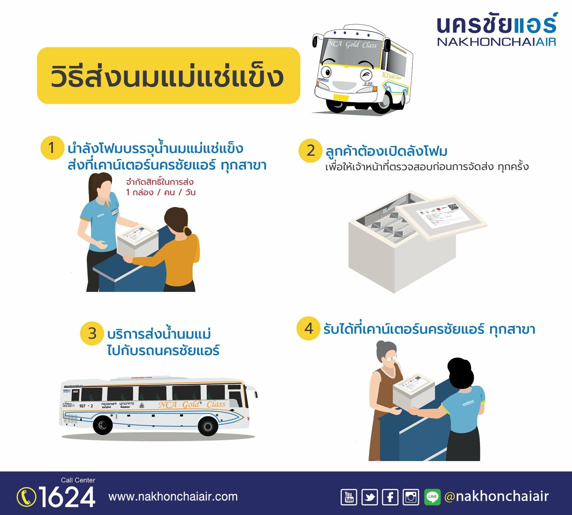 นครชัยแอร์ จับมือกรมอนามัย ให้บริการขนส่งน้ำนมแม่ฟรี ไปกับรถรับ-ส่งพัสดุนครชัยแอร์ 42 สาขา