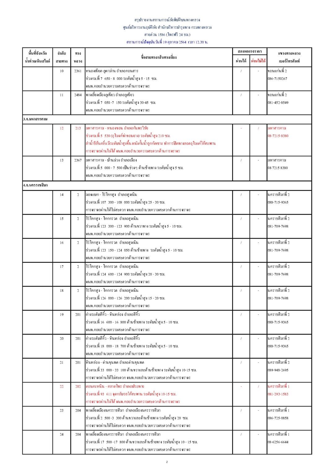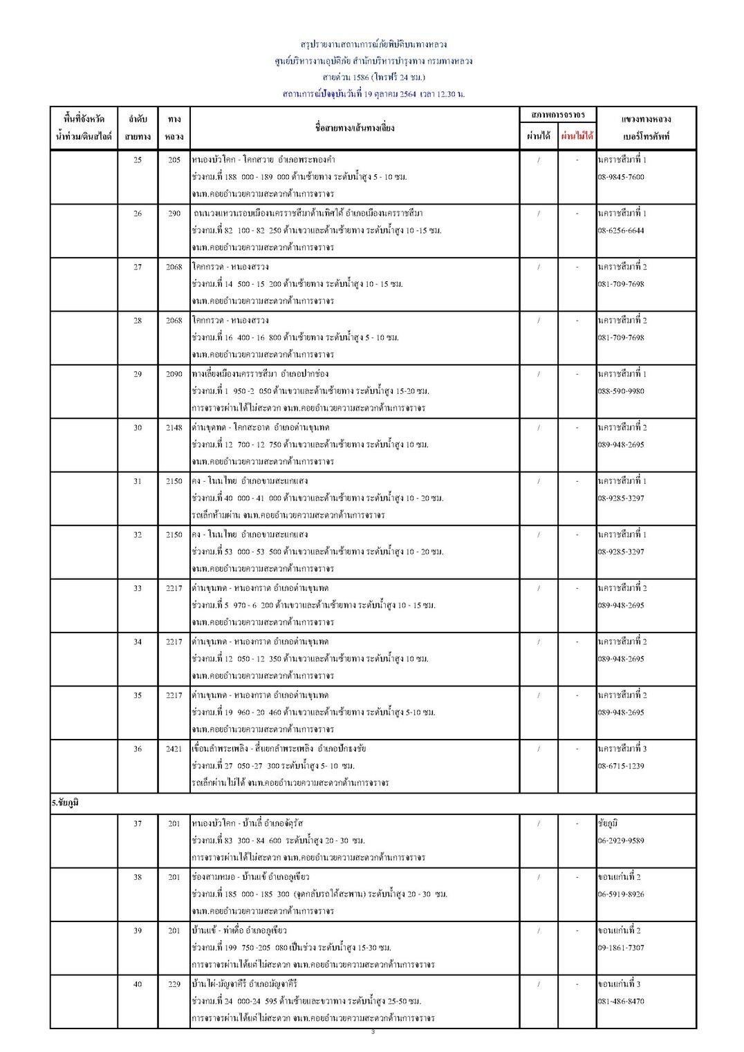 4.จ.นครราชสีมา (23 แห่ง) การจราจรผ่านได้ 22 แห่ง และการจราจรผ่านไม่ได้ 1 แห่ง