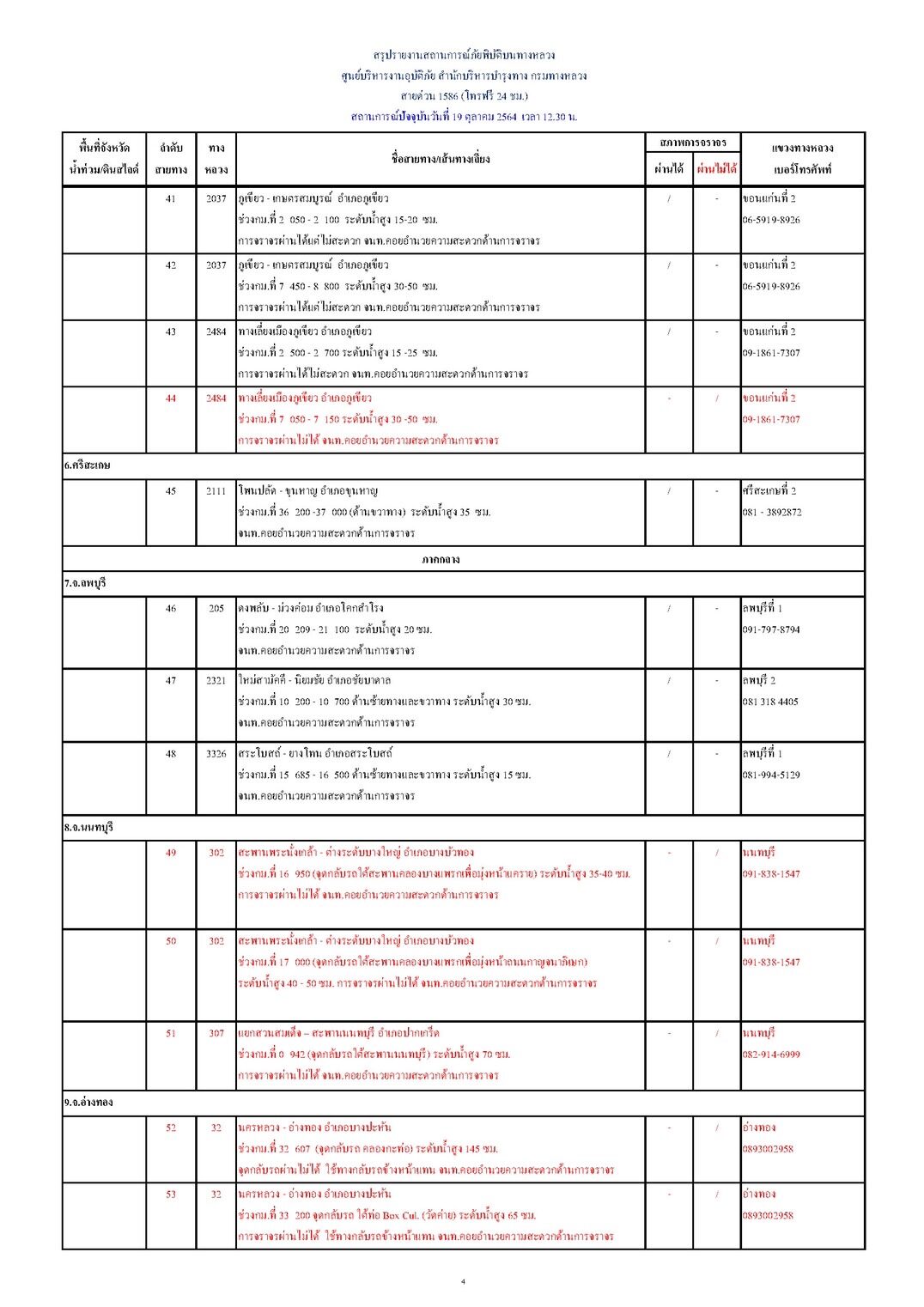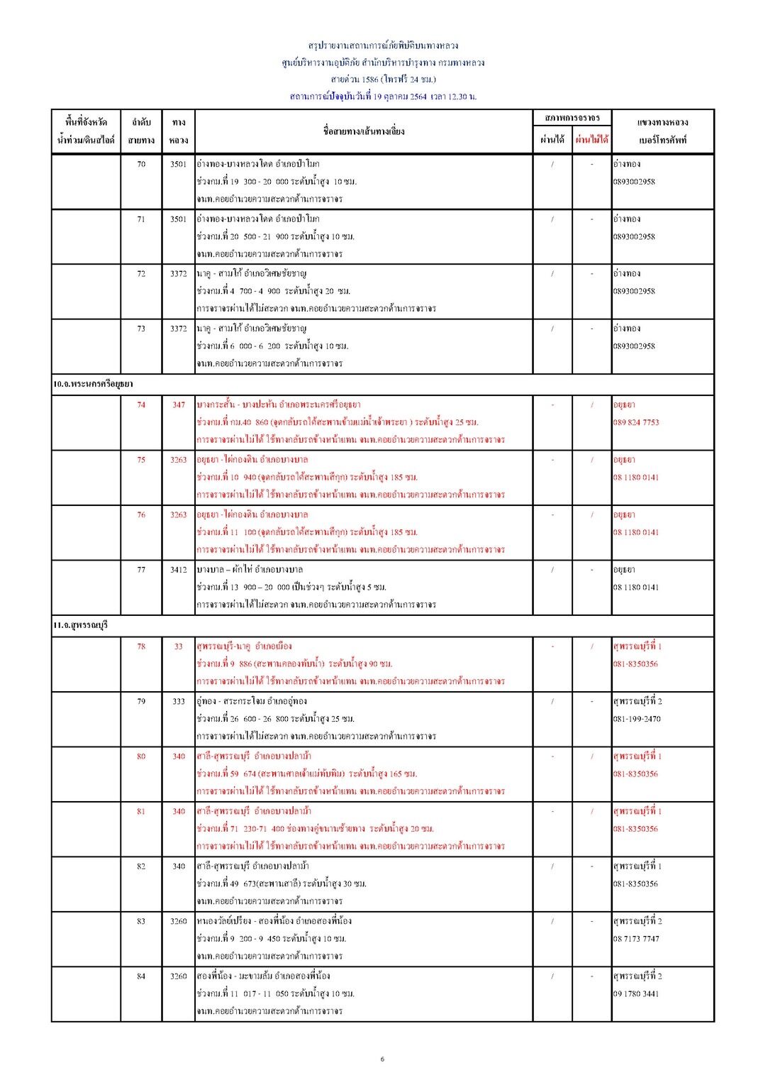 10.จ.พระนครศรีอยุธยา (4 แห่ง) การจราจรผ่านได้ 1 แห่ง และการจราจรผ่านไม่ได้ 3 แห่ง