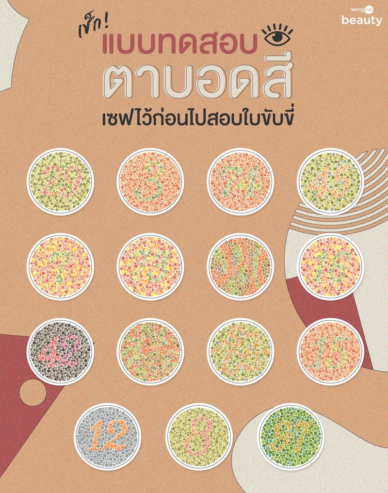 เช็กอาการตาบอดสี! แบบทดสอบตาบอดสีฟรี เซฟไว้ก่อนไปสอบใบขับขี่