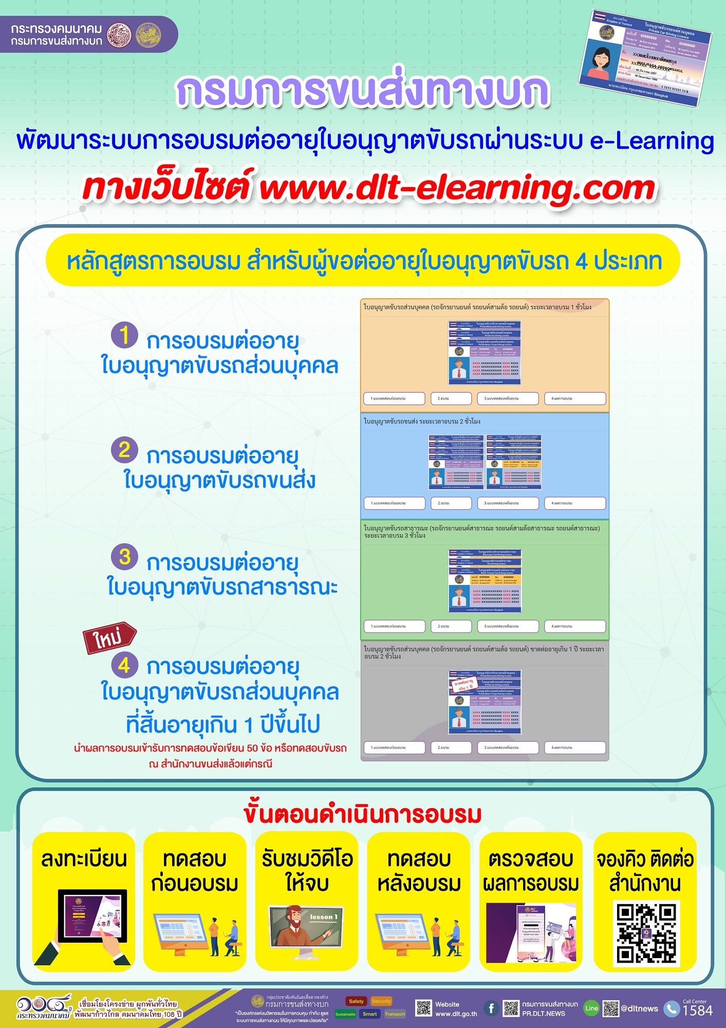 - การอบรมต่ออายุใบอนุญาตขับรถส่วนบุคคล ที่สิ้นอายุเกิน 1 ปีขึ้นไป