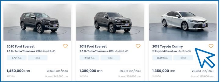 เลือกรถรุ่นที่ท่านสนใจ โดยที่ CARS24 นั้นรวบรวมรถมือสองสภาพดีที่ไม่เคยผ่านการชนกว่า 900 คันให้ได้เลือก