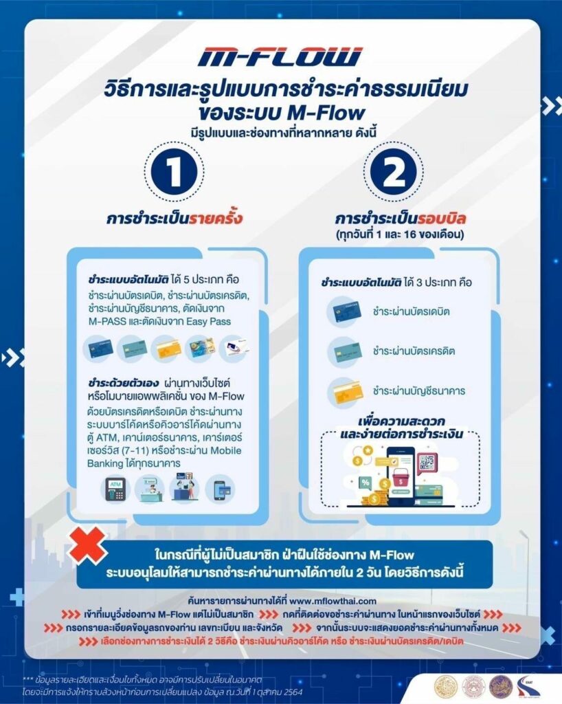 ในกรณีที่เกี่ยวกับการขอโต้แย้งของประชาชน และแจ้งรายละเอียดที่เกี่ยวข้องกับการผ่านทางอัตโนมัติแบบไม่มีไม้กั้น (เอ็มโฟล์ว) กรมจะให้เจ้าหน้าที่ติดต่อกลับเท่านั้น จึงขอแจ้งให้ประชาชนโปรดระมัดระวัง ไม่หลงเชื่อคำแอบอ้างดังกล่าว แนะนำให้ชำระผ่านช่องทางที่กรมทางหลวงได้กำหนดไว้ เช่น ช่องทางออนไลน์ ซึ่งผู้ใช้บริการสามารถชำระผ่านทางเว็บไซต์ หรือโมบายแอพพลิเคชั่น ของ เอ็มโฟล์ว ด้วยบัตรเครดิตหรือเดบิต หรือชำระผ่านทางระบบบาร์โค้ดหรือคิวอาร์โค้ดผ่านทางตู้ ATM, เคาน์เตอร์ธนาคาร, เคาน์เตอร์เซอร์วิส (7-11) หรือชำระผ่าน Mobile Banking ได้ทุกธนาคารเพื่อความปลอดภัย ลดการแพร่ระบาดการติดเชื้อโควิด – 19 และให้ประชาชนตรวจสอบชื่อบัญชีก่อนทำการชำระโดยชื่อบัญชีจะต้องไม่เป็นชื่อบัญชีส่วนบุคคล