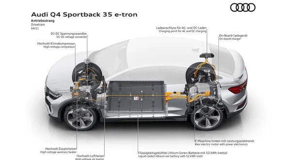 ตัวแปลง DC/DC: อุปกรณ์นี้แปลงกระแสไฟ DC แรงสูงจากชุดแบตเตอรี่ ไปเป็นไฟ DC แรงดันต่ำที่จำเป็นสำหรับการใช้งานอุปกรณ์เสริมในรถยนต์และชาร์จแบตเตอรี่เสริม
