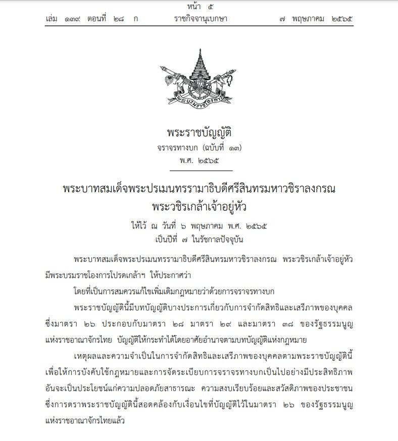 อย่างไรก็ตามจากการตรวจสอบ พ.ร.บ.จราจรทางบก (ฉบับที่ 13) พ.ศ.2565 พบว่า มาตรา 7 ให้ยกเลิกความในมาตรา 123 แห่ง พ.ร.บ.จราจรทางบก พ.ศ.2522 ซึ่งแก้ไขเพิ่มเติมโดยคำสั่งหัวหน้าคณะรักษาความสงบแห่งชาติ ที่ 14/2560 เรื่อง มาตรการ เพิ่มประสิทธิภาพการบังคับใช้กฎหมายว่าด้วยการจราจรทางบก ลงวันที่ 21 มีนาคม พ.ศ.2560 และให้ใช้ความต่อไปนี้แทน