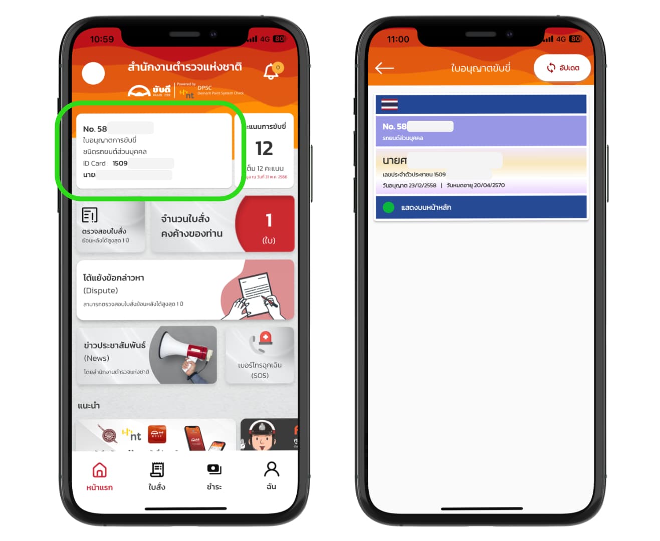 ส่วนนี้จะเป็นข้อมูลใบขับขี่ของเรา มีเลขที่อนุญาตใบขับขี่ ประเภทใบขับขี่ เลขบัตรประจำตัวประชาชน พร้อมชื่อและนามสกุลของเรา