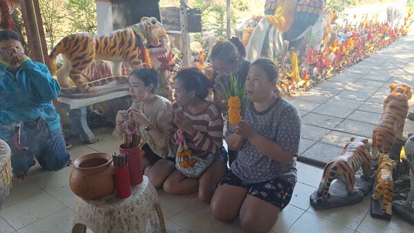 แห่นำลาบเลือด-ข้าวเหนียว ถวาย เจ้าพ่อเสือ ขอพรขอโชคลาภ ล้วงไหได้เลขเด็ด 3 ตัว แต่บนแผงไม่มีเลยคว้าอีกเลขมา เผย เหตุการณ์เมื่อ 8 ปีที่แล้ว ก่อนสมปรารถนา