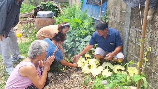 นางอัมพร กล่าวอีกว่า จึงพากันนำธูปเทียนมาจุด เพื่อขอโชคลาภตามความเชื่อ ซึ่งตนเชื่อว่า ต้นฟักทองมาให้โชคลาภ ตนจึงไม่คิดที่จะเด็ดยอดต้นฟักทองสีเหลืองทองนี้