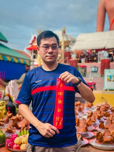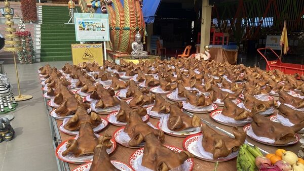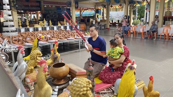 ขอเมียได้เมีย ขอลูกได้ลูก พนักงานหนุ่ม พาภรรยาอุ้มลูก นำหัวหมู 99 หัว ไขไก่ 100 ฟอง ผลไม้ 9 ชนิด แก้บน หลวงพ่อสมหวัง วัดดังนครปฐม ส่องเลขเด็ดหางประทัด