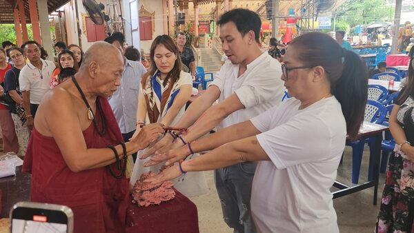 จากนั้น หลวงพ่อแป๊ะ ได้เข้าพิธีลงยันต์หลังมือเปิดฟ้าเปิดดินเปิดเมืองบาดาลให้กับสาธุชนนักเสี่ยงโชค มีสาธุชนจำนวนมากเข้าร่วมพิธีในครั้งนี้ ขณะเดียวกันปุยฝ้ายหลังจากที่ทำบุญวันเกิดเสร็จแล้วได้มากราบบูชาขอพรพระตรีมูรติเทพแห่งความรักที่เชื่อกันว่าหากใครได้บูชาจะบังเกิดแต่ความโชคดีความเมตตา รวมถึงการค้าขายที่เจริญรุ่งเรือง
