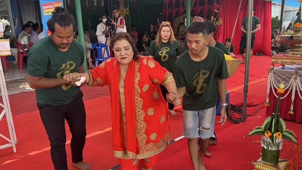 แห่ส่องเลขเด็ด แม่หมอพลังเทพ ร่างทรงดัง จัดพิธีบวงสรวงพญานาค
