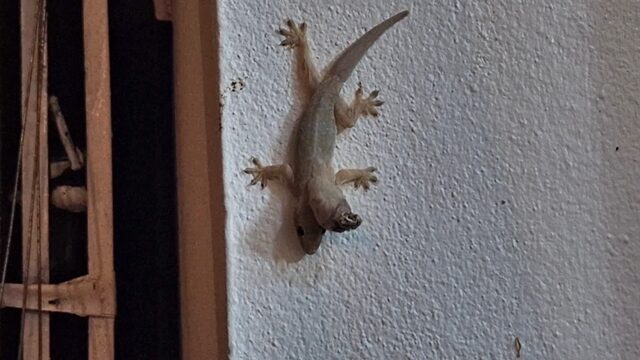 วันที่ 22 ต.ค.2567 ที่ร้านมองเธอ บริเวณถนนชายกว๊าน เลขที่ 13/17 ต.เวียง อ.เมือง จ.พะเยา ซึ่งเป็นศูนย์จำหน่ายของดีของเด่นจังหวัดพะเยา พบจิ้งจกสีน้ำตาล 1 ตัว มี 2 หัว 4 ขา 1 หาง ยังมีชีวิตอยู่ที่กำลังเกาะบริเวณมุมเสาข้างร้าน