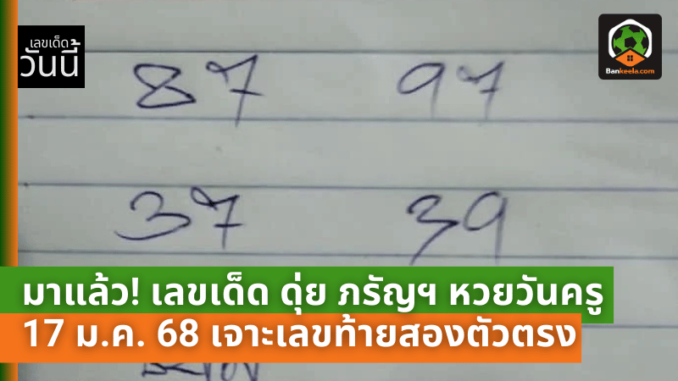มาแล้ว! เลขเด็ด ดุ่ย ภรัญฯ หวยวันครู 17 ม.ค. 68 เจาะเลขท้ายสองตัวตรง พร้อมระวังเลขเบิ้ล