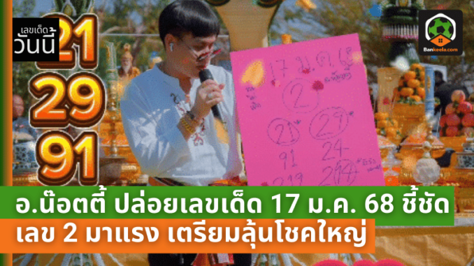 อ.น๊อตตี้ ปล่อยเลขเด็ด 17 ม.ค. 68 ชี้ชัดเลข 2 มาแรง เตรียมลุ้นโชคใหญ่หวยรัฐบาลไทย