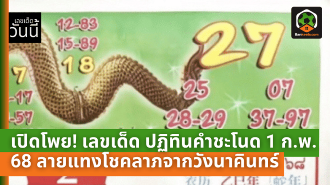 เปิดโพย! เลขเด็ด ปฏิทินคำชะโนด 1 ก.พ. 68 ลายแทงโชคลาภจากวังนาคินทร์