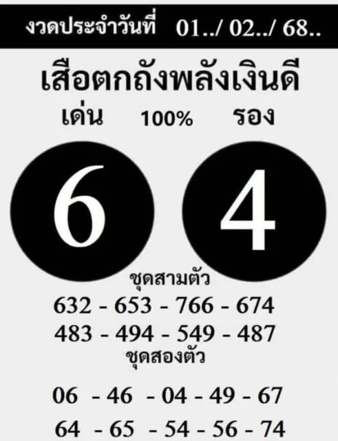 เหลือเวลาอีกเพียงไม่กี่วันก่อนที่ สลากกินแบ่งรัฐบาล งวด 1 กุมภาพันธ์ 2568 จะประกาศผล ใครที่ยังไม่มีเลขในใจ สามารถใช้แนวทางจาก เสือตกถังพลังเงินดี ในการเลือกซื้อลอตเตอรี่กันได้ ขอให้โชคดี เฮง ๆ รับต้นเดือน กุมภาพันธ์!