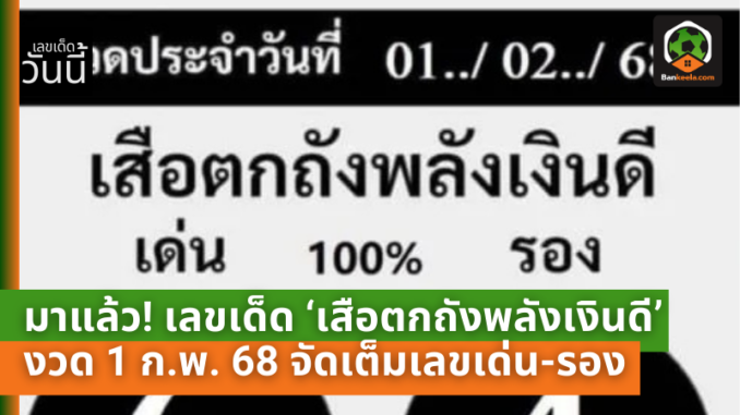 มาแล้ว! เลขเด็ด ‘เสือตกถังพลังเงินดี’ งวด 1 ก.พ. 68 จัดเต็มเลขเด่น-รอง ลุ้นโชคใหญ่ต้นเดือน