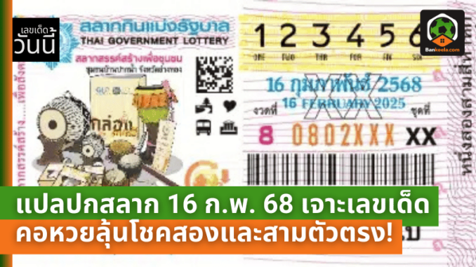 แปลปกสลาก 16 ก.พ. 68 เจาะเลขเด็ดงวดนี้ คอหวยลุ้นโชคสองและสามตัวตรง!