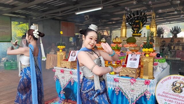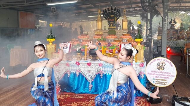 แต่ก็ให้คนทำโต๊ะบวงสรวงส่งภาพทางออนไลน์และไลฟ์สดให้เจ้าของโต๊ะร่วมพิธีบวงสรวงอยู่ในต่างประเทศได้ดู โดยมีพ่อจ้ำประจำลานบวงสรวงคำชะโนดเป็นผู้พานำทำพิธีแล้วเสร็จ