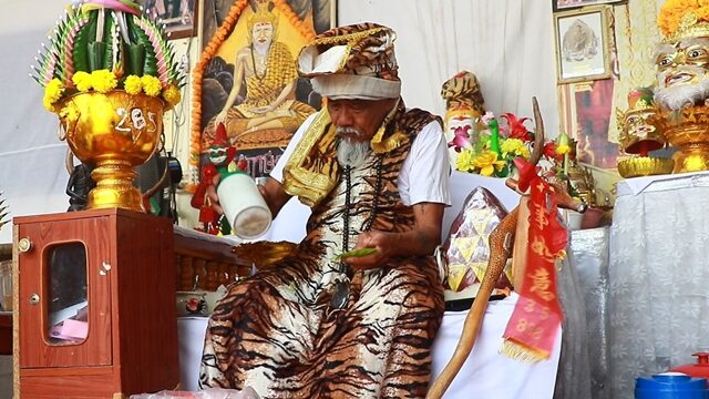 ซึ่งเมื่อธูปไหม้จนหมด ปรากฏเห็นเป็นตัวเลข 2 9 1 บรรดาลูกศิษย์จึงได้บันทึกเอาไว้ จากนั้น ร่างทรงจึงเปลี่ยนเสื้อผ้าเป็นชุดฤาษี ไม่นานอาการของร่างทรงก็มีท่าทีแปลก ๆ มีน้ำเสียงคล้ายคนแก่ ในปากเคี้ยวหมาก ลักษณะการเดินหลังค่อมในมือถือไม้เท้าเดินไปมาหน้าปรัมพิธี