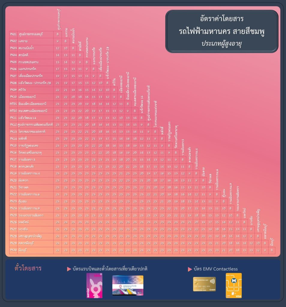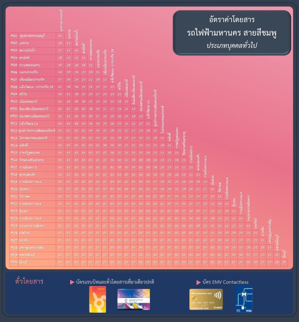 ค่าโดยสาร รถไฟฟ้าสายสีชมพู ส่วนต่อขยาย