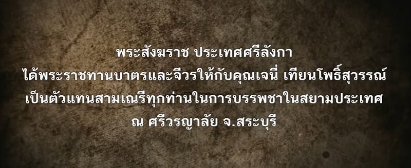 ทั้งนี้ในรายการเผยวันที่เดินทางไปประเทศศรีลังกา พระสังฆราช ประเทศศรีลังกา ได้พระราชทานบาตรและจีวรให้กับ เจนี่ เทียนโพธิ์สุวรรณ์ เป็นตัวแทนสามเณรีทุกท่านในการบรรพชาในประเทศไทย ณ ศรีวรญาลัย จ.สระบุรี รวมทั้งยังขลิบผมให้ เจนี่ ด้วย