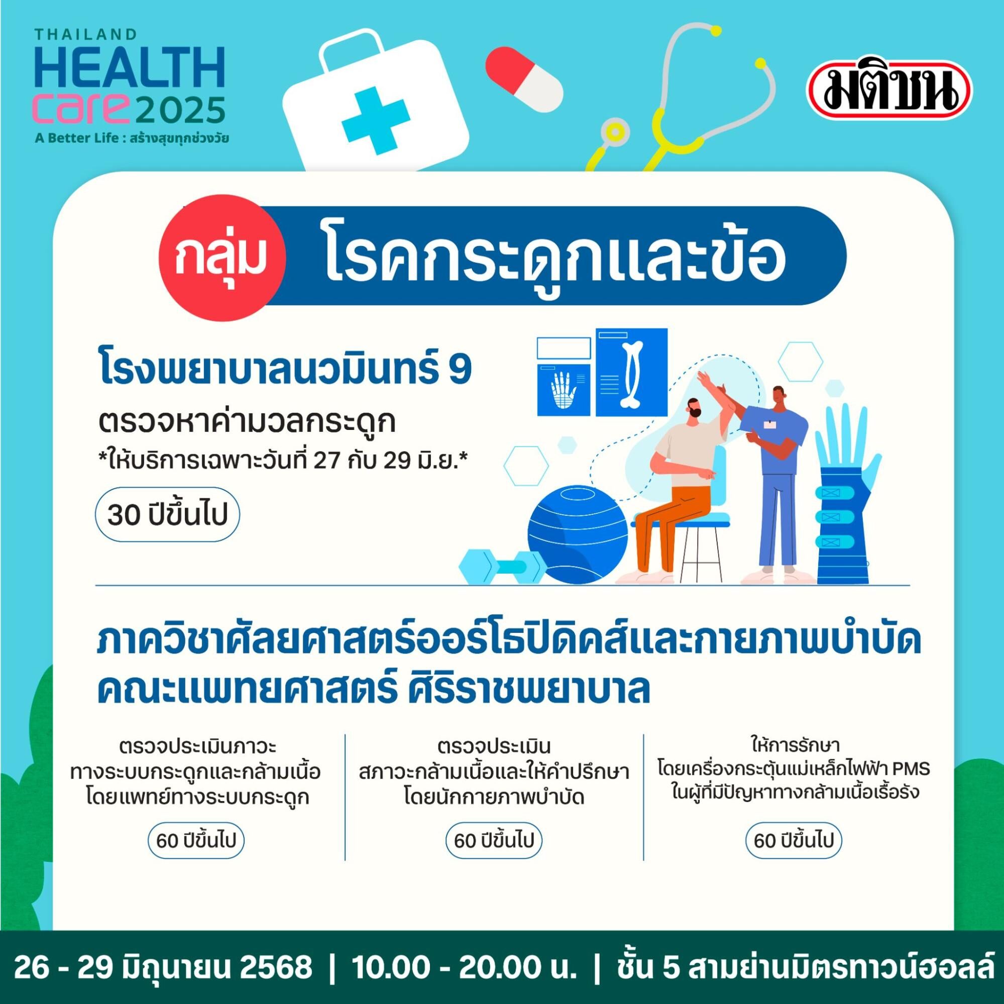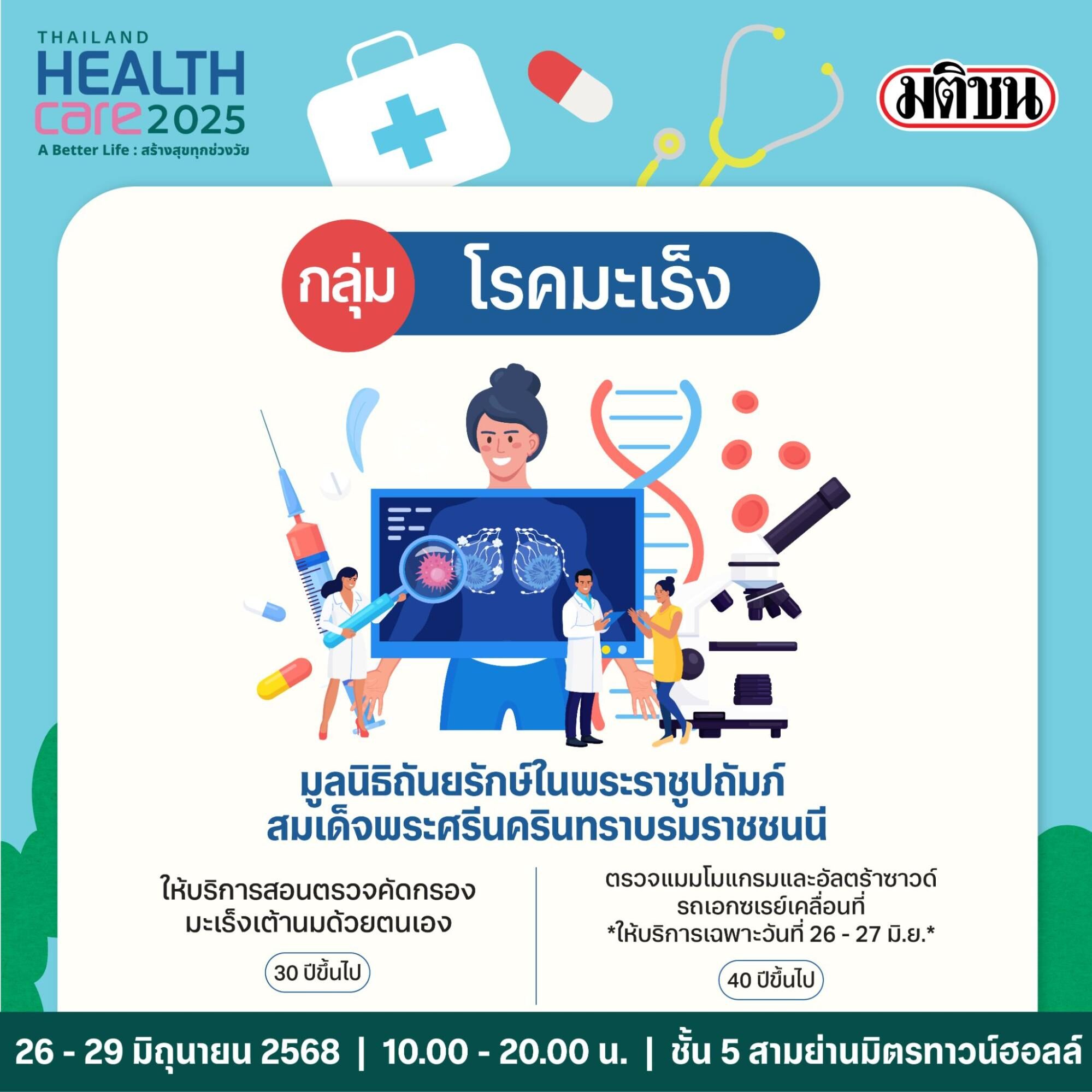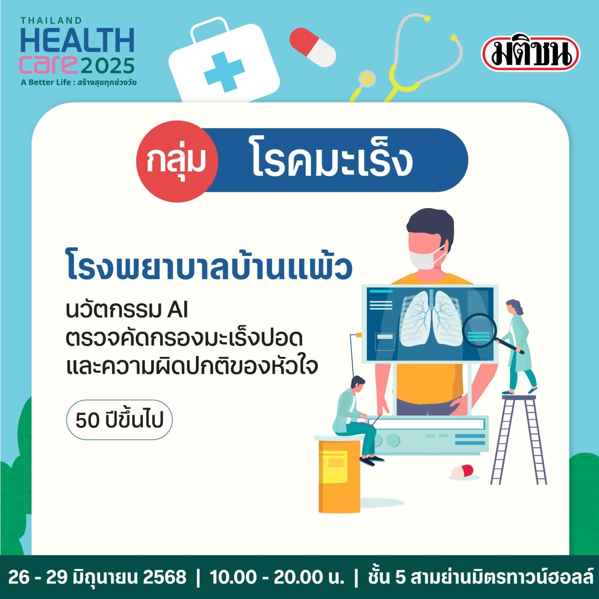 เพื่อเน้นย้ำความสำคัญการให้บริการตรวจสุขภาพเชิงรุก โดยเฉพาะในพื้นที่ศูนย์การค้าที่สะดวกและเข้าถึงได้ง่าย เครือมติชน เดินหน้าปีที่ 17 แท็กทีมโรงพยาบาลชั้นนำภาครัฐและเอกชน สำนักงานหลักประกันสุขภาพแห่งชาติ (สปสช.) กระทรวงสาธารณสุขและหน่วยงานในสังกัด ตลอดจนหน่วยงานพันธมิตรจัดงาน Thailand Healthcare 2025 ในธีม ‘A Better Life : สร้างสุขทุกช่วงวัย’