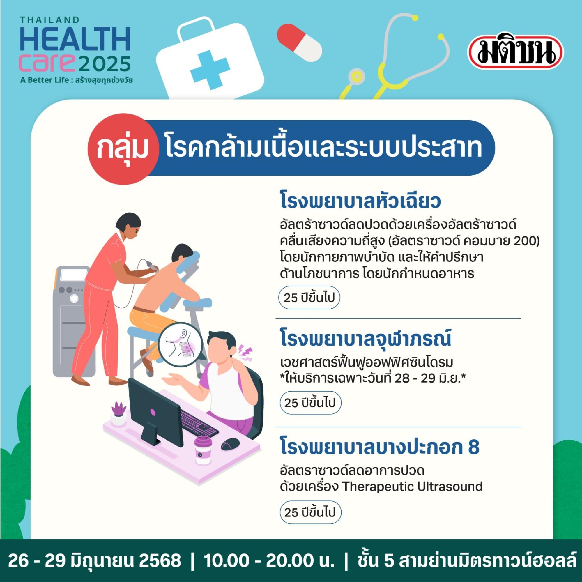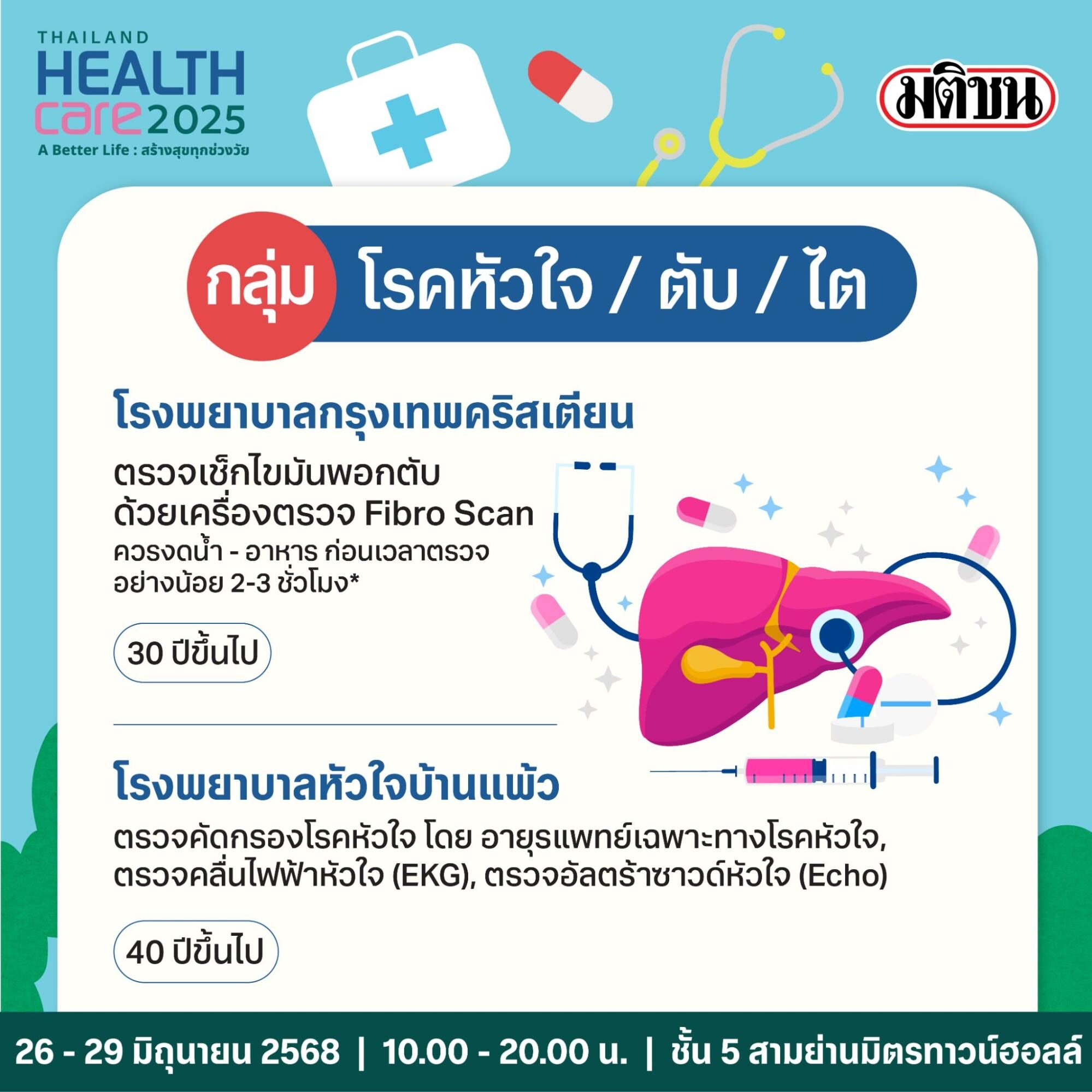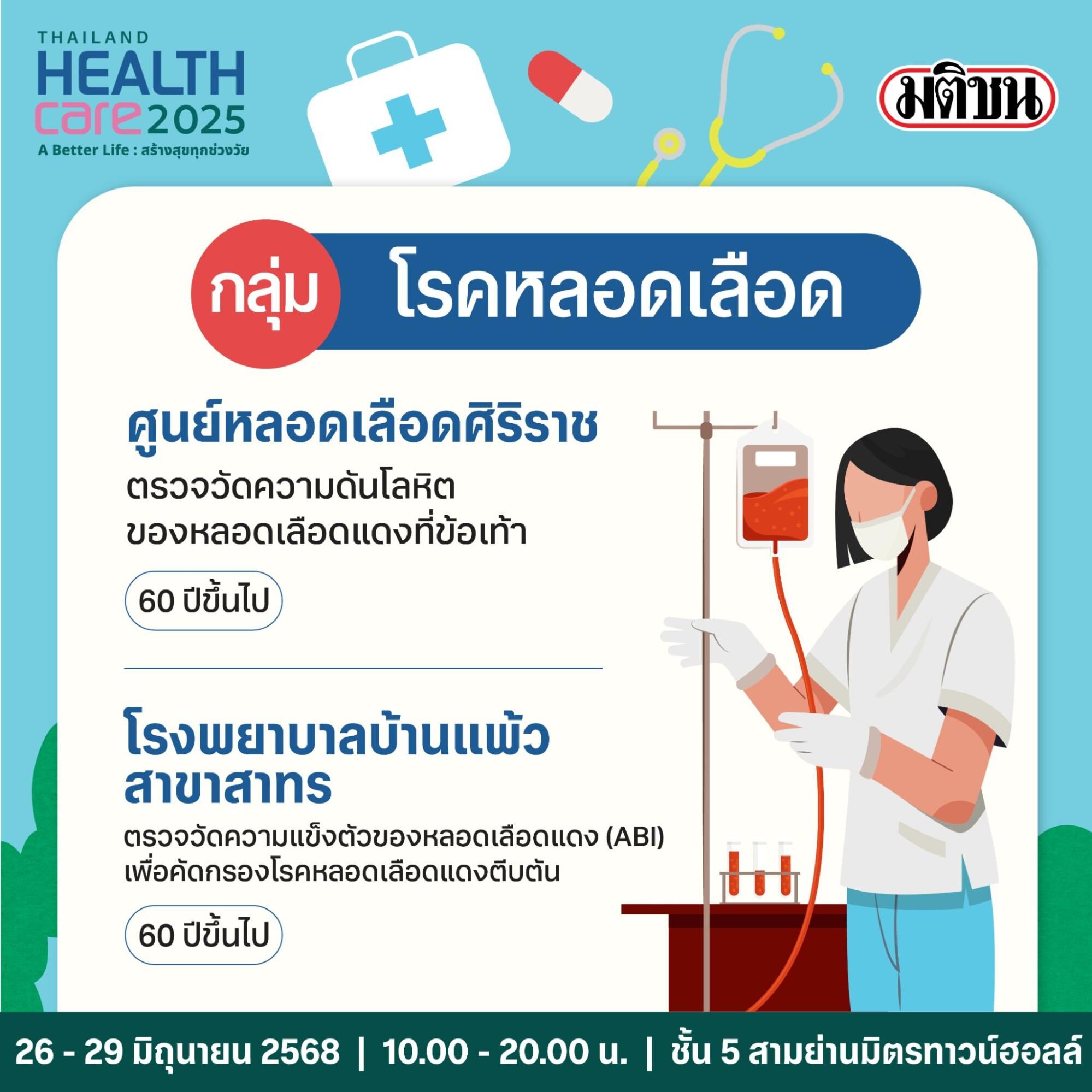 เพื่อเน้นย้ำความสำคัญการให้บริการตรวจสุขภาพเชิงรุก โดยเฉพาะในพื้นที่ศูนย์การค้าที่สะดวกและเข้าถึงได้ง่าย เครือมติชน เดินหน้าปีที่ 17 แท็กทีมโรงพยาบาลชั้นนำภาครัฐและเอกชน สำนักงานหลักประกันสุขภาพแห่งชาติ (สปสช.) กระทรวงสาธารณสุขและหน่วยงานในสังกัด ตลอดจนหน่วยงานพันธมิตรจัดงาน Thailand Healthcare 2025 ในธีม ‘A Better Life : สร้างสุขทุกช่วงวัย’