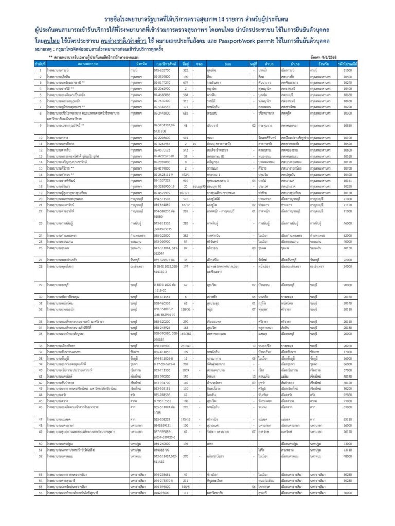 ที่มา : อัพเดท ประกันสังคม ตรวจสุขภาพฟรี 14 รายการมีอะไรบ้าง พร้อมรายชื่อรพ.ให้บริการ