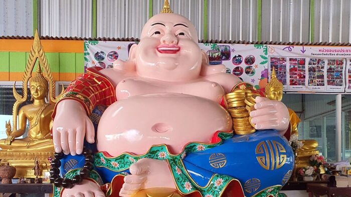 ที่มีลักษณะอ้วนพลุ้ย เปลือยอก ใบหน้ายิ้ม ร่าเริงสดใสอยู่ตลอดเวลา ใบหูยาวจดบ่า ผิวสีเหมือนทองคำ ที่ประดิษฐานอยู่บนแท่นบูชา ภายในวัดหนองวัลย์เปรียง ตามความเชื่อที่ว่า พระสังกัจจายน์โพธิสัตว์ อัครสาวก คือเทพเจ้าแห่งความสุขสมหวัง