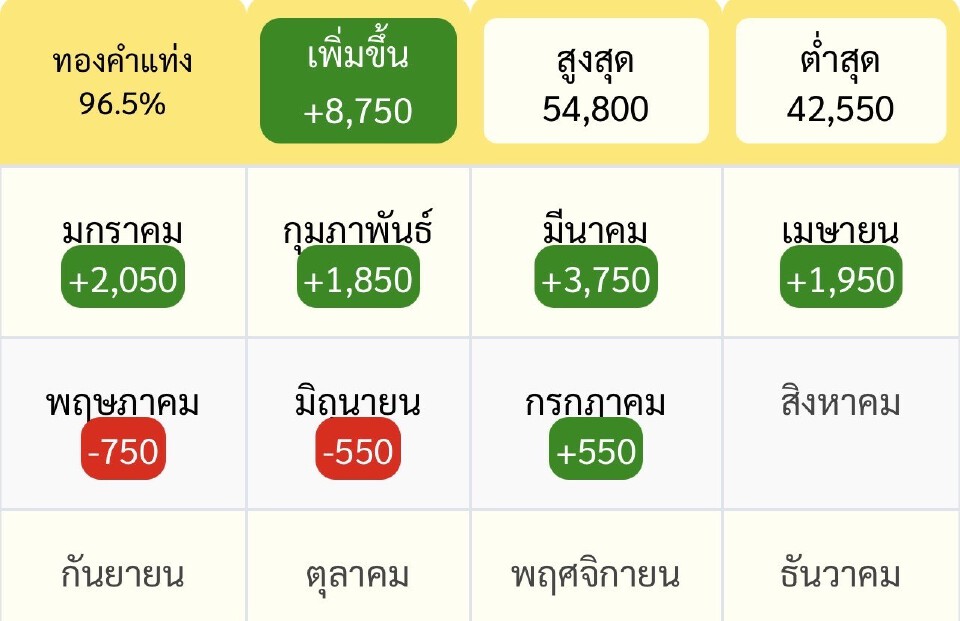 ที่มา : ราคาทองล่าสุด 2568 พุ่ง 8,750 บาทตั้งแต่ต้นปี เช็คการปรับขึ้น-ลง