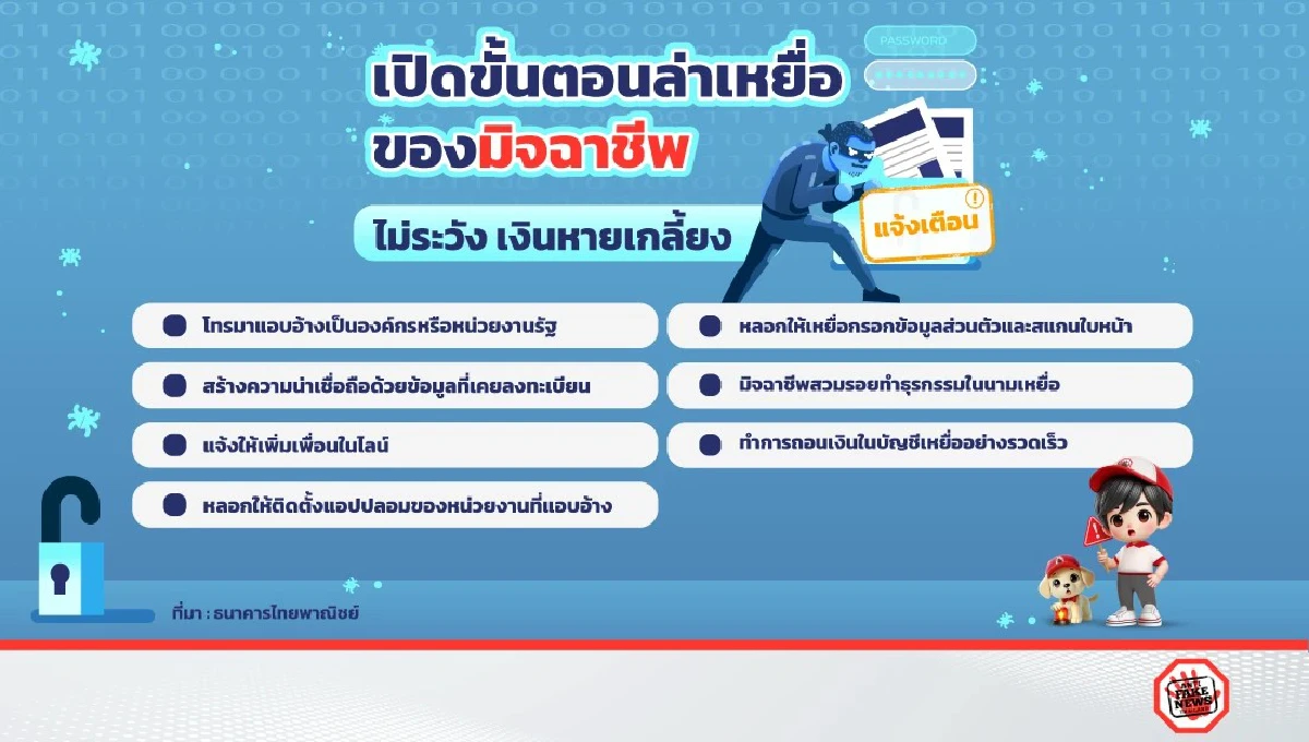 ตำรวจ เตือนภัย เผย 7 ขั้นตอนล่าสุด ที่ มิจฉาชีพ ใช้หลอก ดูดเงิน หมดบัญชี แอบอ้างเป็นเจ้าหน้าที่จากหน่วยงานรัฐ สร้างความน่าเชื่อถือ ด้วยข้อมูลที่เหยื่อเคยใช้ลงทะเบียน