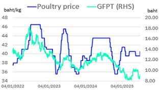 - ราคาสินค้าเกษตรฟื้นตัว ส่วนราคาเนื้อสัตว์พบว่า ราคาหมูย่อ 4 สัปดาห์ติด ขณะที่ราคาไก่เริ่มฟื้น อาจแนะเก็งกำไรกลุ่มที่อิงราคาเนื้อไก่ (GFPT)