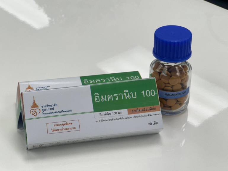 ตัวยาชนินี้ ที่มีประสิทธิภาพสูง ใช้รักษาโรคมะเร็งได้หลากหลายชนิด ให้ผลการรักษาดี มีอาการข้างเคียงต่ำ เป็นที่ยอมรับจากแพทย์ผู้เชี่ยวชาญด้านมะเร็งวิทยา โดยยาเม็ดรักษาโรคมะเร็งชนิดมุ่งเป้าตำรับแรกที่ผลิตขึ้นในประเทศไทย คือ อิมครานิบ 100/IMCRANIB 100 ซึ่งประกอบด้วยตัวยาสำคัญอิมาทินิบ (IMATINIB) 100 มิลลิกรัม โดยได้รับการขึ้นทะเบียนตำรับยาจากสำนักงานคณะกรรมการอาหารและยา (อย.) กระทรวงสาธารณสุข เมื่อวันที่ 20 พ.ค. 2568 และพร้อมสำหรับการนำไปใช้เพื่อรักษาผู้ป่วยมะเร็ง