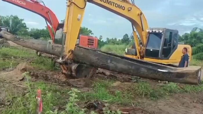 จังหวะนั้นได้ขุดไปโดนไม้ แต่ไม่ทราบว่าเป็นไม้อะไร เนื่องจากที่ผ่านมาก็พบเจอไม้อยู่ในคลองเป็นประจำ แต่ครั้งนี้แปลก ดันเป็นเรือที่สร้างจากไม้ตะเคียน จึงได้นำขึ้นมาจากคลองน้ำมาไว้บนฝั่ง