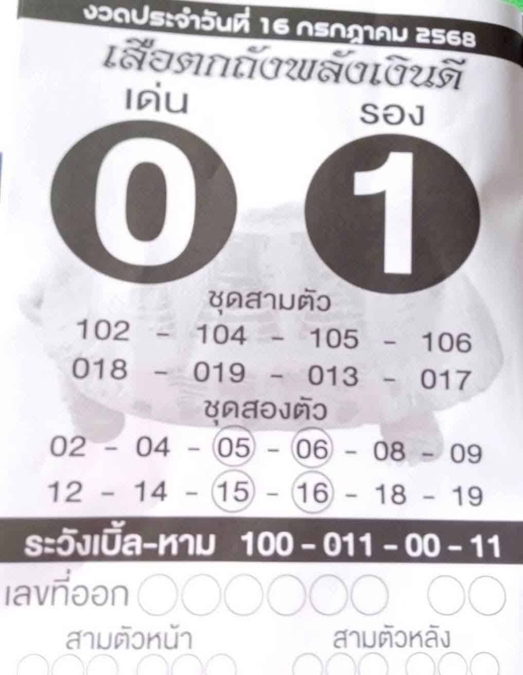 สำหรับใครที่รอคอยแนวทางเลข 2 ตัว 3 ตัวท้าย เราขอแนะนำ “เสือตกถังพลังเงินดี” โดยในงวด 16 ก.ค. 68 นี้พร้อมเสิร์ฟความรวยอีกครั้งกับชุดตัวเลขที่น่าสนใจ ดังนี้