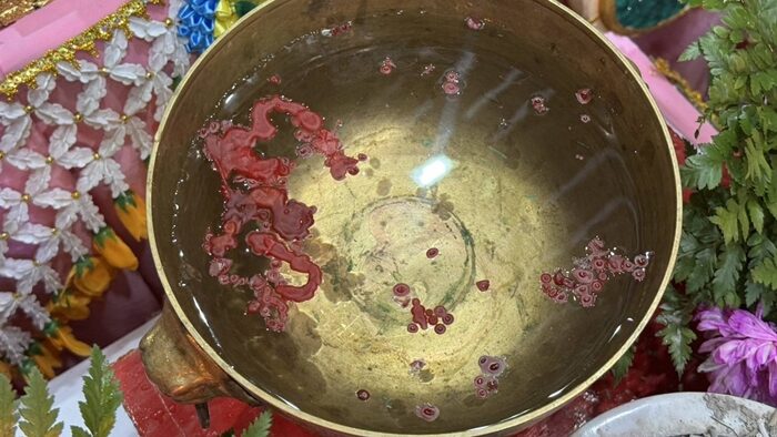 เมื่อพายุฝนหยุดตกลงมาอย่างหนักได้หยุดลง หมอเอ วังนาคินทร์ ได้ทำพิธีหยอดเทียนน้ำมนต์ลงในขันเพื่อขอโชคลาภให้กับลูกศิษย์และผู้ศรัทธาที่เข้าร่วมพิธี โดยหยดเทียนในขันน้ำมนต์นั้นมีตัวเลขคล้ายกับเลข 363, 34, 36, 38 โดยผู้ร่วมพิธีได้เข้ามาถ่ายรูปเลขขันน้ำมนต์ดังกล่าวนำไปเสี่ยงโชคกันมากมาย