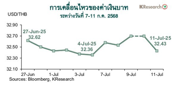 KBANKมองค่าเงินบาทเคลื่อนไหวในสัปดาห์หน้า 14-18 ก.ค. 68 ที่ระดับ 32.20-32.80 บาท/ดอลลาร์ บล,กสิกรไทยให้กรอบ ดัชนีหุ้นไทยในสัปดาห์หน้าที่ 1,100และ1,145จุด