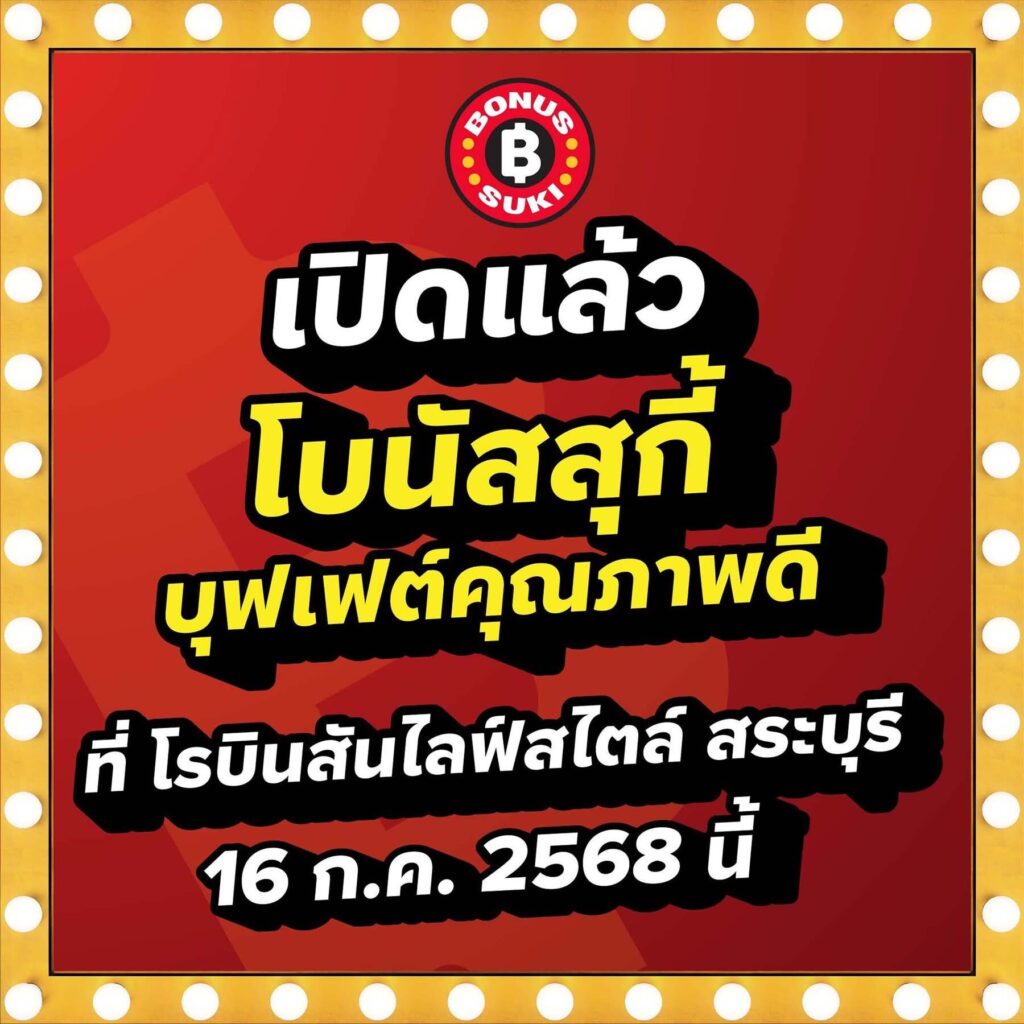 มาใหม่อีกแบรนด์ โบนัสสุกี้ อิ่มไม่อั้น 219 บาท เปิดถึงตี 5 สาขาแรกโรบินสันสระบุรี 16 ก.ค.นี้