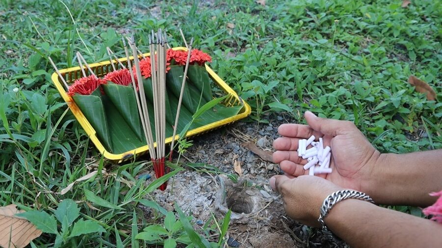 รอยันค่ำ! ไม่ผิดหวัง เลขเสี่ยงทาย พญาบึ้ง จุดธูปขอหวย คีบออกมาให้ 2-3 ตัวตรงๆ