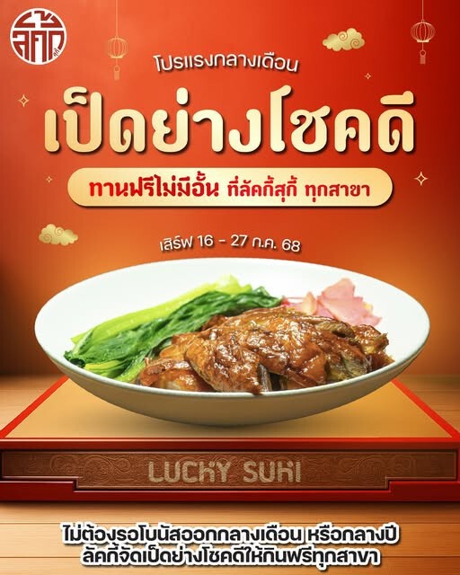ขณะที่อีกหนึ่งแบรนด์คนไทย อย่างลัคกี้ สุกี้ Lucky Suki ก็ประกาศว่าจะไม่เล่นสงครามราคา ล่าสุดเตรียมจัดโปรโมชันรับเป็ดย่างโชคดีกินฟรีทุกสาขา