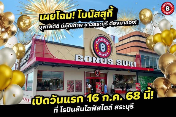 สำหรับ Bonus Suki เตรียมฉลองเปิดร้านในวันที่ 16 กรกฎาคมพร้อมทั้งจัดโปร 1 ฟรี 1 และชูจุดเด่นของให้เลือกกว่า 60 เมนู ระยะเวลาที่ทานบุฟเฟ่ต์ 2.15 ชั่วโมง