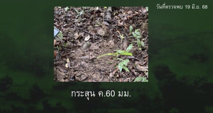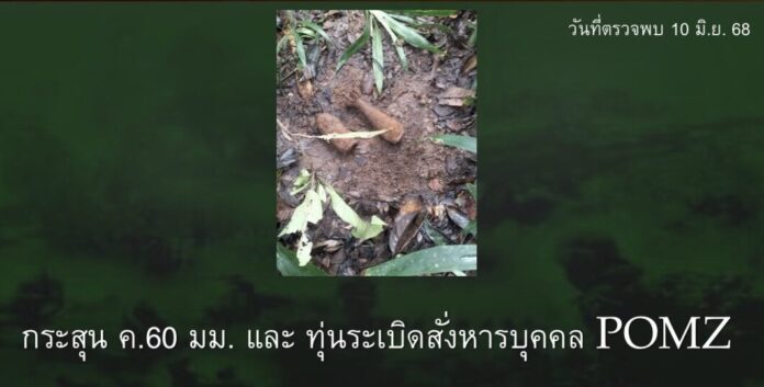 - วันที่ตรวจพบ 19 มิ.ย. 68 ตรวจพบกระสุน ค.60 มม. และกระสุน ค.60 มม. และ ระเบิดสังหารบุคคล M 16