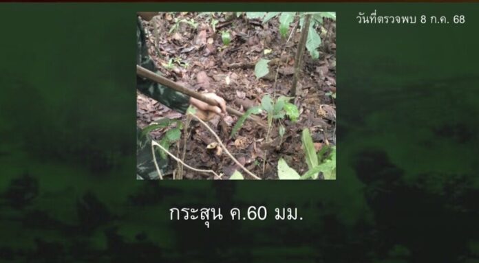 - วันที่ตรวจพบ 8 ก.ค. 68 ตรวจพบ กระสุน ค.60 มม