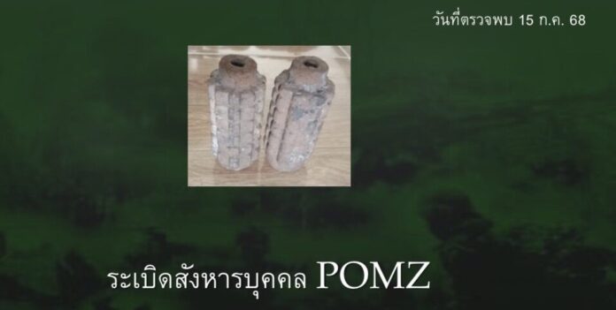 - วันที่ตรวจพบ 15 ก.ค. 68 ตรวจพบระเบิดสังหารบุคคล POMZ