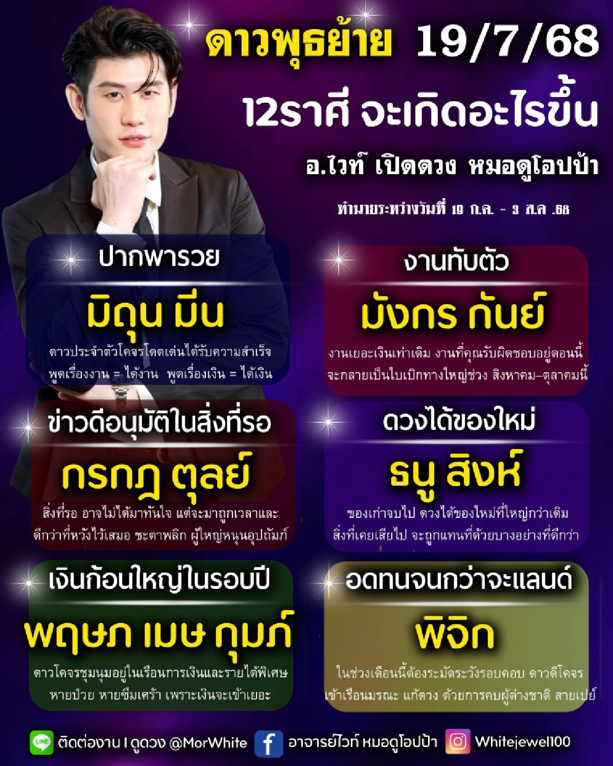 "หมอไวท์" ดูดวงวันนี้ 3 ราศี ดาวพุธย้าย 19 ก.ค. เงินก้อนใหญ่ในรอบปี ดาวโคจรชุมนุมอยู่ในเรือนการเงิน รายได้พิเศษ เงินเข้าเยอะ
