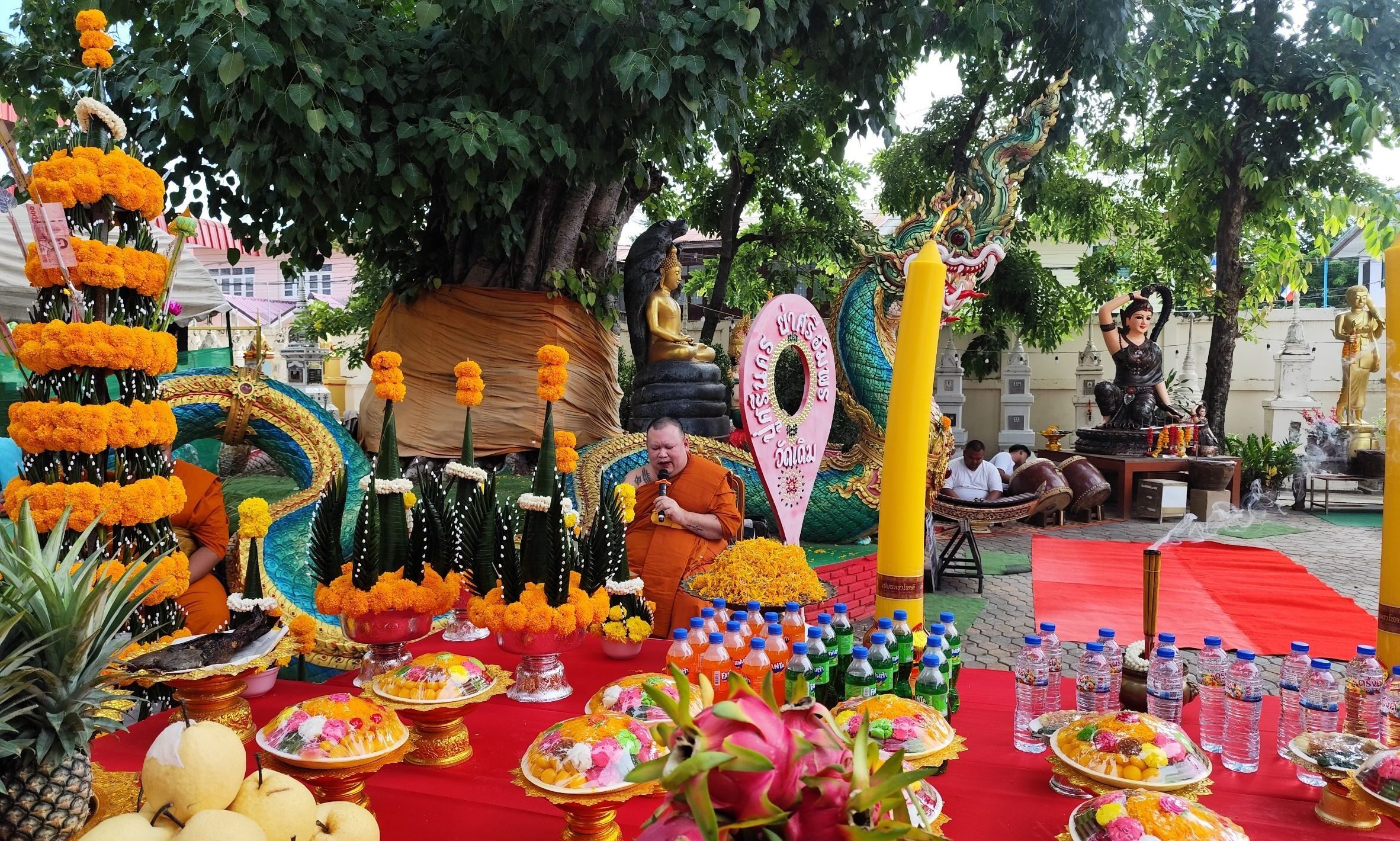 พร้อมประกอบพิธีบวงสรวง หลวงพ่อพุทธวิมายะ หลวงพ่อดำ หลวงพ่อแดง และพิธีทักษิณานุปาทาน ถวายแด่พระโพธิวรญาณ (หลวงพ่อเขียว) โดยมีพระสงฆ์ 9 รูป เจริญพระพุทธมนต์ และมีนายธีระวัฒน์ มวยดี สมาชิกสภาเทศบาลตำบลพิมาย เป็นประธานดำเนินงาน