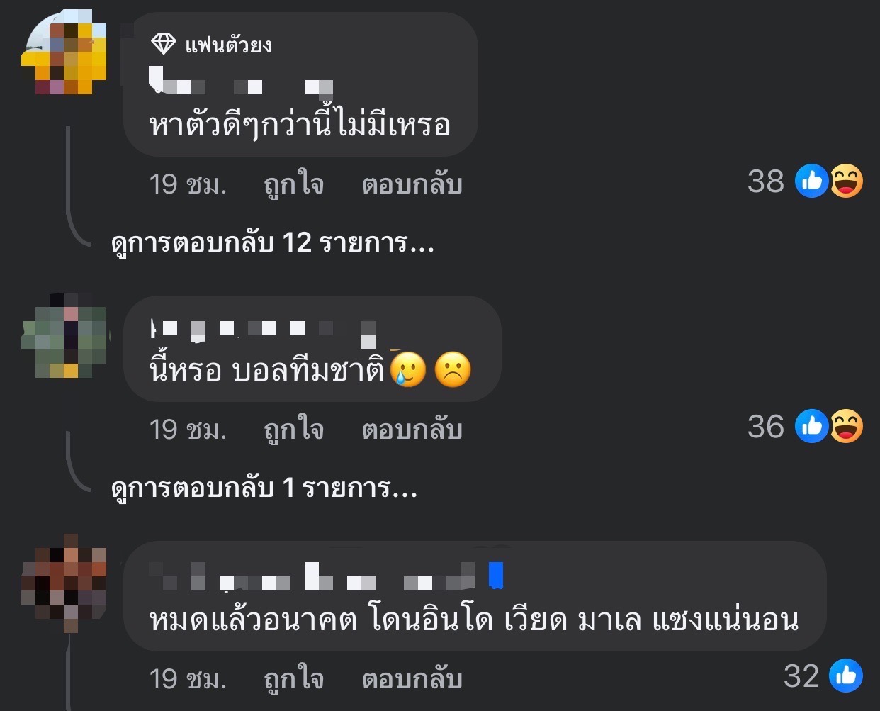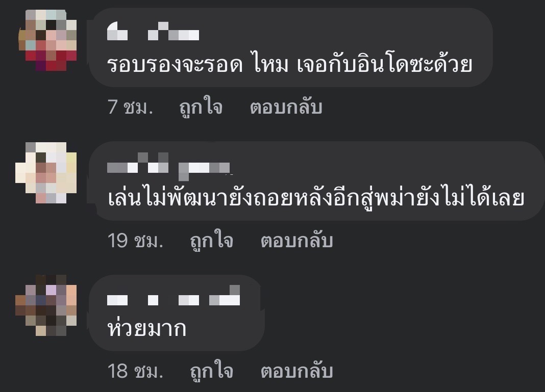ล่าสุด แฟนบอลชาวไทย ไม่ค่อยพอใจผลงานของ "ช้างศึกยังบลัด" เท่าไหร่นัก พร้อมออกมาวิพากษ์วิจารณ์ฟอร์มการเล่นขอทีมชุดนี้เต็มโลกออนไลน์ โดยส่วนใหญ่มองว่าชุดนี้ไม่ดีพอที่จะก้าวขึ้นมาสู่ทีมชุดใหญ่ในอนาคต แถมเล่นบอลไม่เป็นทรง เกมรุกไม่มีไอเดีย รวมไปถึงเกมรับที่ไม่มีระบบ พร้อมตั้งคำถามว่าอนาคตบอลไทยอยู่ตรงไหน?
