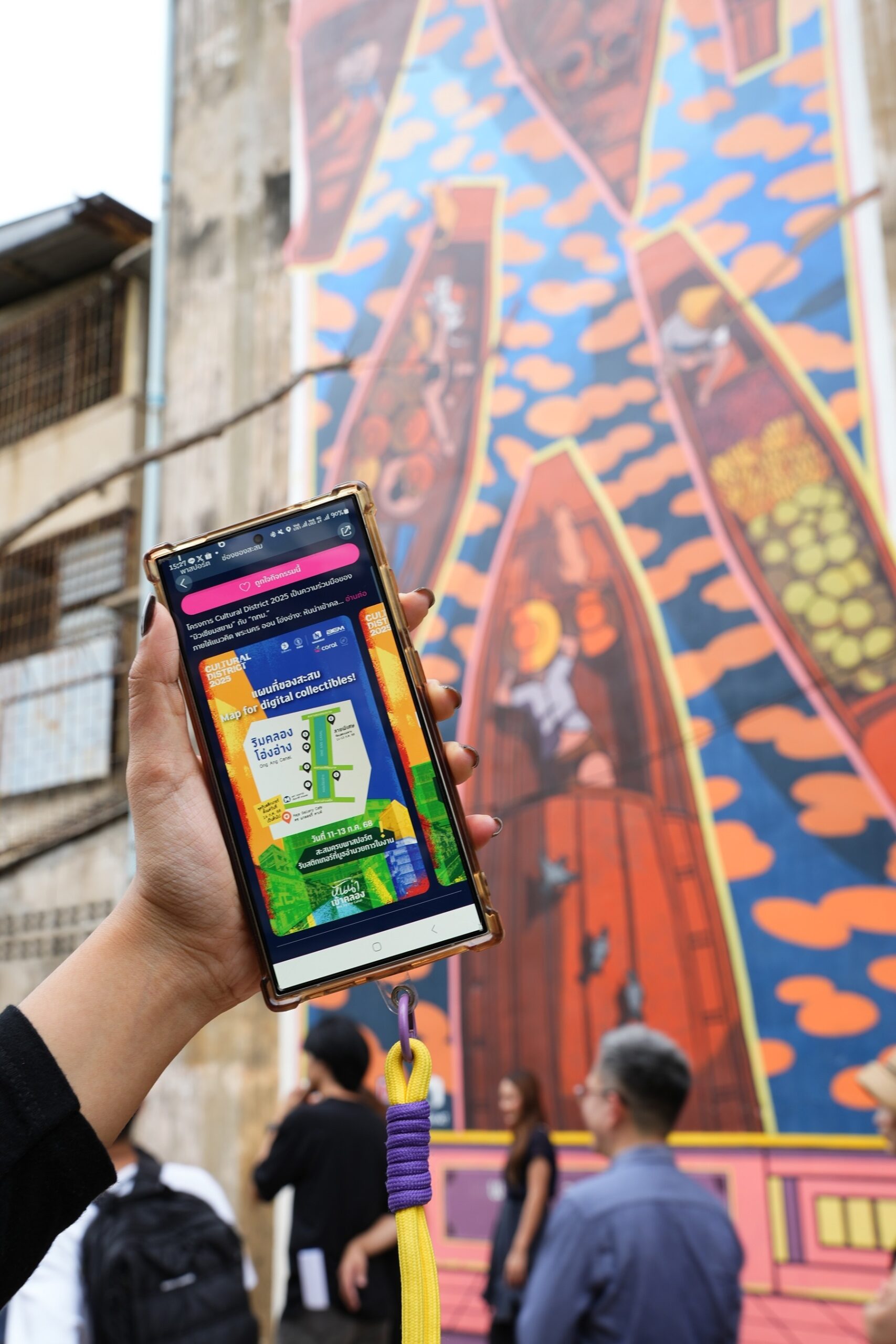 ซึ่งเป็นส่วนหนึ่งของเทศกาลศิลปะ เปิดเกาะรัตนโกสินทร์ Cultural District 2025 โดยมิวเซียม สยาม หรือ สถาบันพิพิธภัณฑ์การเรียนรู้แห่งชาติ (สพร.) สร้างสรรค์ประสบการณ์ให้การเดินชมศิลปะสนุกมากขึ้น ชวนเก็บสะสมงานศิลปะในรูปแบบดิจิทัลทั้งหมด 6 ภาพ ที่จัดแสดงตลอดเส้นทางริมคลองโอ่งอ่าง ตั้งแต่สะพานดำรงสถิตถึงสะพานสมมตอมรมารค เมื่อสะสมครบทุกภาพ สามารถรับสติกเกอร์ของที่ระลึกได้ที่ Kaja Gallery Cafe